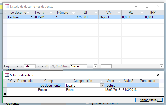 Así, podría consultar, por ejemplo, los documentos de ventas emitidos para el cliente que está en pantalla en ese momento, con posibilidad de señalar los filtros que desee, según los campos de que disponga en la consulta.